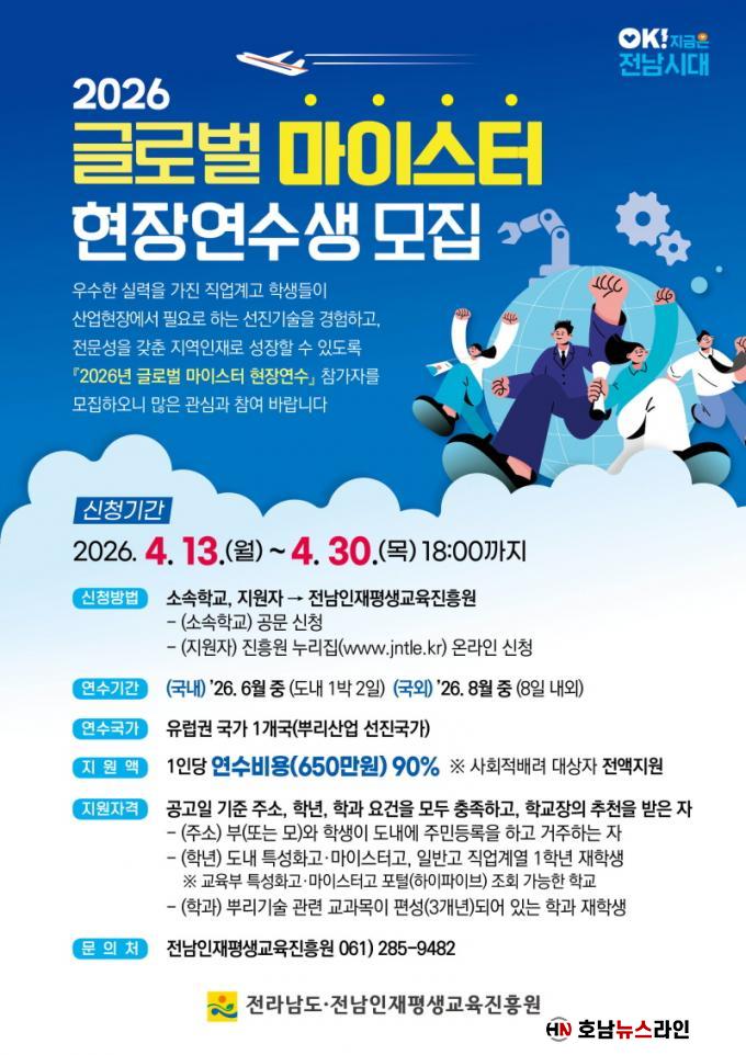 ¸ðÁý ´ë»óÀº Àü³²Áö¿ª Á÷¾÷°è°í »Ñ¸®±â¼ú °ü·Ã Çаú¿¡ ÀçÇÐ ÁßÀÎ 1Çгâ ÇлýÀ¸·Î, ¼·ù¿Í ¸éÁ¢ ½É»ç¸¦ °ÅÃÄ ÃÖÁ¾ ¼±¹ßÇÑ´Ù. ¿¬¼öºñ´Â 1Àδç ÃÖ´ë 650¸¸ ¿ø ¹üÀ§¿¡¼ 90%±îÁö Áö¿øµÇ¸ç, »çȸÀû ¹è·Á ´ë»óÀÚ´Â Àü¾× Áö¿øÇÑ´Ù.