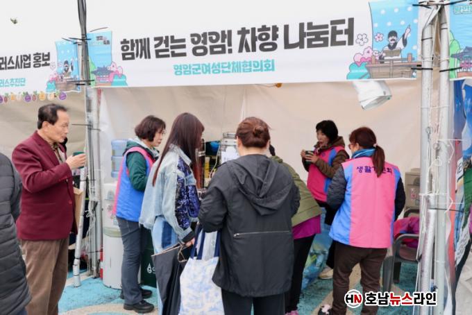 Çà»ç±â°£ µ¿¾È ÃÑ 54¸íÀÇ ¿©¼º´ÜüÇùÀÇȸ ÀÚ¿øºÀ»çÀÚµéÀÌ Âü¿©ÇØ ¸ÅÀÏ ¿ÀÀü 9½ÃºÎÅÍ ¿ÀÈÄ 6½Ã±îÁö À½·á ³ª´® ºÎ½º¸¦ ¿î¿µÇßÀ¸¸ç, ¿µ¾Ï±º ¿©¼º´ÜüÇùÀÇȸ ¼Ò¼Ó 11°³ ´Üü°¡ ¸±·¹ÀÌ ¹æ½ÄÀ¸·Î Âü¿©ÇØ Àǹ̸¦ ´õÇß´Ù.