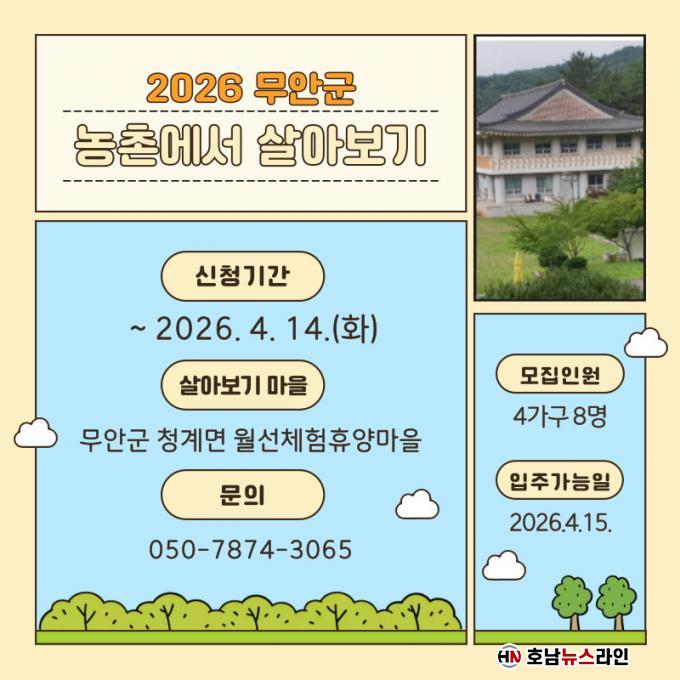 ¹«¾È±ºÀº 2026³â ¿î¿µ ¸¶À»·Î û°è¸é ¿ù¼±¸¶À»(¿ù¼±Ã¼ÇèÈ޾縶À»)À» ¼±Á¤Çϰí, Ÿ ½Ã¡¤µµ¿¡ °ÅÁÖÇÏ´Â µµ½Ã¹ÎÀ» ´ë»óÀ¸·Î ÇÁ·Î±×·¥À» ÃßÁøÇÑ´Ù. Âü°¡ÀÚ´Â ÃÖÀå 3°³¿ù µ¿¾È ¿ù¼±¸¶À»¿¡ ü·ùÇÏ¸ç ´Ù¾çÇÑ ³óÃÌ»ýȰÀ» °æÇèÇÏ°Ô µÈ´Ù.