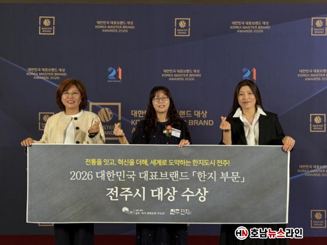 ÀüÁֽô 14ÀÏ ¼¿ï ½Å¶óÈ£ÅÚ¿¡¼ ¿¸° ¡®2026 ´ëÇѹα¹ ´ëÇ¥ºê·£µå ´ë»ó ½Ã»ó½Ä¿¡¼ ¡®ÀüÁÖÇÑÁö¡¯°¡ ÁöÀÚü ºÎ¹® Ư»ê¹° ºê·£µå ¡®ÇÑÁö ºÎ¹®¡¯¿¡¼ ¿µ¿¹ÀÇ ´ë»óÀ» ¼ö»óÇß´Ù°í ¹àÇû´Ù.
