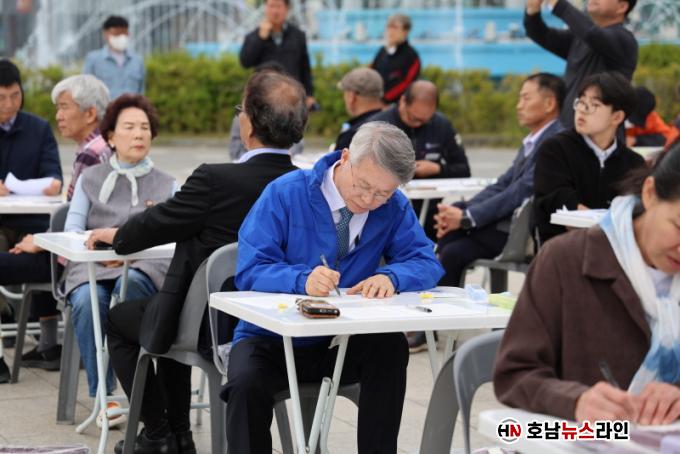 ¹Î È帴 À̳¯ Çà»ç¿¡ Âü¿©ÇÑ ½Ã¹Îµé°ú ¡®ÀüÅÂÀÏ ÆòÀü¡¯À» ÇÑ ±ÛÀÚ¾¿ ¼ÕÀ¸·Î ÀÌ¾î ¾²¸ç ³ëµ¿ÀÇ ¼ÒÁßÇÔ°ú Àΰ£´Ù¿î »îÀÇ °¡Ä¡¸¦ µÇ»õ±â´Â ½Ã°£À» °¡Á³´Ù.