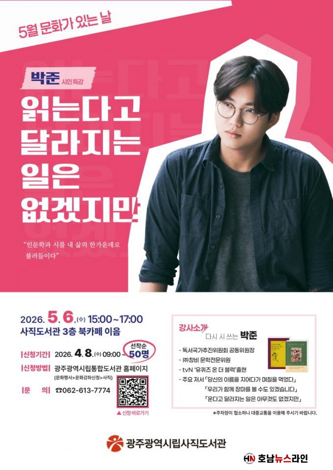Âü°¡ ½ÅûÀº ¼±Âø¼ø 50¸íÀ» ¹Þ´Â´Ù. ±¤ÁÖ±¤¿ª½Ã¸³ÅëÇÕµµ¼°ü ´©¸®Áý(¹®ÈÇà»ç¡æ¹®È°Á ½Åû¡æ»çÁ÷µµ¼°ü)À» ÀÌ¿ëÇϰųª ÀüÈ(062-613-7774)·Î Á¢¼öÇÏ¸é µÈ´Ù.