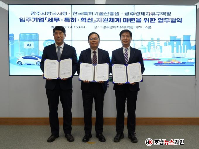 À̳¯ Çù¾à½Ä¿¡´Â ¼±¼®±â ±¤ÁÖ°æÀÚûÀå, ±èÇм± ±¤ÁÖÁö¹æ±¹¼¼Ã»Àå, ±è¸í¼· Çѱ¹Æ¯Çã±â¼úÁøÈï¿øÀåÀÌ Âü¼®ÇØ Áö¿ª ±â¾÷ÀÇ Çõ½Å ¼ºÀåÀ» À§ÇÑ Çù·Âü°è ±¸Ãà¿¡ ¶æÀ» ¸ð¾Ò´Ù.