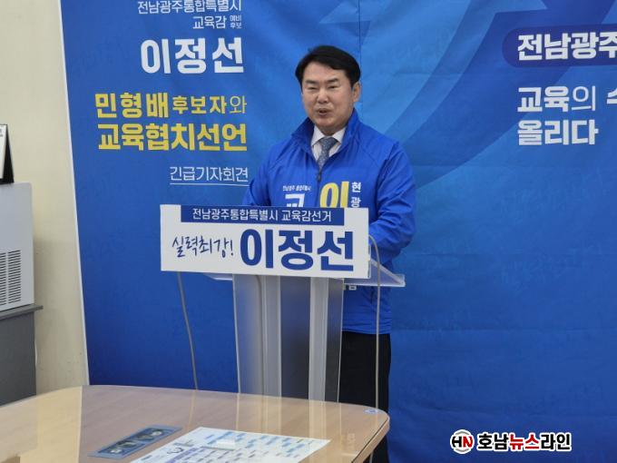 ÀÌ ¿¹ºñÈ帴 16ÀÏ ±¤Áֽñ³À°Ã» ºê¸®Çη뿡¼ ±ä±Þ ±âÀÚȸ°ßÀ» ¿°í ¹ÎÇü¹è Ưº°½ÃÀå Èĺ¸ÀÇ¤Ó ÇÙ½É °ø¾à°ú ÀÚ½ÅÀÇ ±³À°Á¤Ã¥À» °áÇÕÇÑ ¡®Àü³²±¤ÁÖ ±³À°-½ÃÁ¤ »ó»ý ºñÀü¡¯À» ¹ßÇ¥Çß´Ù.