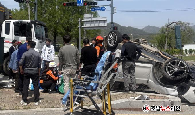 Á¤Ã¶¿ø È帴 4¿ù 21ÀÏ ³· 12½Ã 1ºÐ°æ, ´ã¾ç±º ¿ù»ê¸é ȹ渮 Àα٠µµ·Î¸¦ Áö³ª´ø Áß ½Â¿ëÂ÷¿Í ȹ°Â÷°¡ Ãæµ¹ÇØ Â÷·® 1´ë°¡ Àüº¹µÈ ¾ÆÂñÇÑ »ç°í ÇöÀåÀ» ¸ñ°ÝÇß´Ù.
