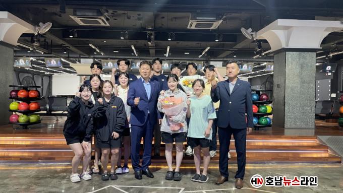 ¼ÛÁøÈ£ Àü¶ó³²µµÃ¼À°È¸ÀåÀº °³ÀÎÀü °æ±âÁ¾·á ÈÄ º¼¸µ°æ±âÀå Á¡°Ë°ú ÇÔ²² ±Ý¸Þ´ÞÀ» ȹµæÇÑ ±è¹®Á¤¼±¼ö¿¡°Ô ²É´Ù¹ßÀ» Àü´ÞÇÏ¸ç º¼¸µ¼±¼ö´Ü¿¡°Ô ¡°½ÃÀÛÀÌ ÁÁÀº ¸¸Å ¿ì¸® Àü³² º¼¸µ¼±¼ö´ÜµéÀÌ ÀÌ ±â¿îÀ» ¹Þ¾Æ ³²Àº °æ±â¿¡¼ ´õ ÁÁÀº °á°ú°¡ Àֱ⸦ ±â´ëÇϰí ÀÀ¿øÇÑ´Ù¡±¸ç ¡°Àü³²¼±¼ö´Ü Áß Ã¹ ±Ý¸Þ´ÞÀ» ȹµæÇÑ ±è¹®Á¤ ¼±¼ö¿¡°Ô Áø½ÉÀ¸·Î ÃàÇÏÇÑ´Ù¡±°í ¸»Çß´Ù.