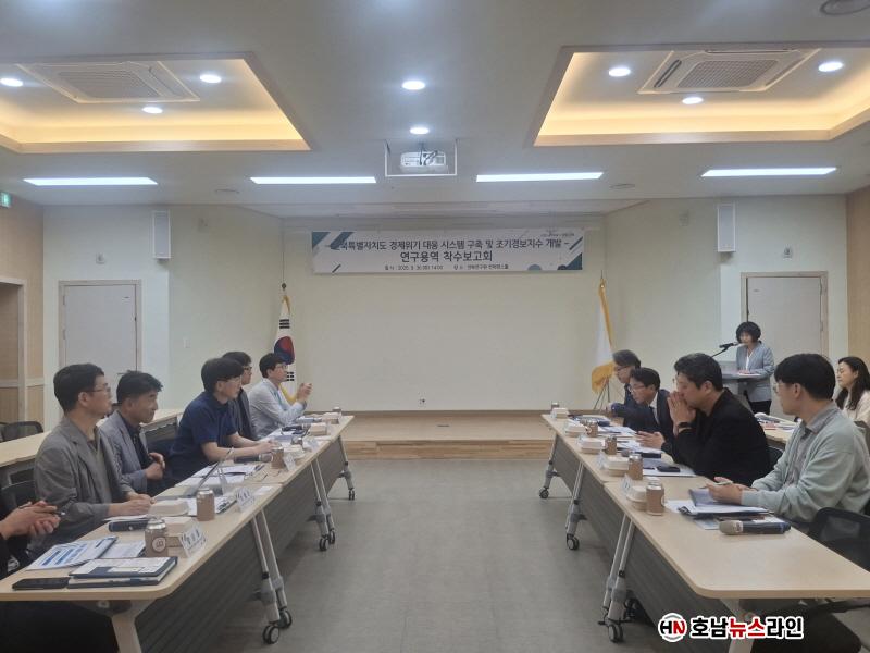 ÀüºÏµµ´Â 30ÀÏ ÀüºÏ¿¬±¸¿ø¿¡¼¡®°æÁ¦À§±â ´ëÀÀ½Ã½ºÅÛ ±¸Ãà ¹× Á¶±â°æº¸Áö¼ö °³¹ß ¿¬±¸¿ë¿ª Âø¼öº¸°íȸ¡¯¸¦ °³ÃÖÇß´Ù. À̹ø ¿¬±¸¿ë¿ªÀº ÀüºÏ¿¬±¸¿øÀÌ ¼öÇà±â°üÀ¸·Î Âü¿©ÇØ ³»³â 5¿ù±îÁö 8°³¿ù°£ ÁøÇàµÇ¸ç, Áö¿ª°æÁ¦ÀÇ À§±â ¡Èĸ¦ Á¶±â¿¡ Áø´ÜÇÏ°í ¼±Á¦ÀûÀ¸·Î ´ëÀÀÇϱâ À§ÇÑ ±â¹ÝÀ» ¸¶·ÃÇÏ´Â µ¥ ¸ñÀûÀÌ ÀÖ´Ù.