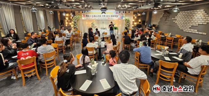 À̹ø Çà»ç´Â ±¹Á¦¿ÍÀÌÁî¸à ¸ñÆ÷»ïÇÐŬ·´(ȸÀå ½Å±¤¼®)°ú ³²¾Ç Ã¹Ö ÆÑÅ丮(»çÀå ¹®Á¤È¯)ÀÇ ÈÄ¿øÀ¸·Î ¸¶·ÃµÆ´Ù. Çà»ç¿¡ Âü¿©ÇÑ °¡Á·µéÀº ÇÔ²² ¸ð¿© ½Ä»ç¸¦ Áñ±â¸ç ¼·ÎÀÇ À̾߱⸦ ³ª´©´Â ½Ã°£À» °¡Á³´Ù. Æò¼Ò Á¢Çϱ⠾î·Á¿î ¿Ü½Ä¹®È¸¦ °æÇèÇÏ¸ç Æ¯º°ÇÑ Ãß¾ïÀ» ½×°í, °¡Á· °£ Á¤¼Àû À¯´ë°¨µµ °ÈµÆ´Ù.