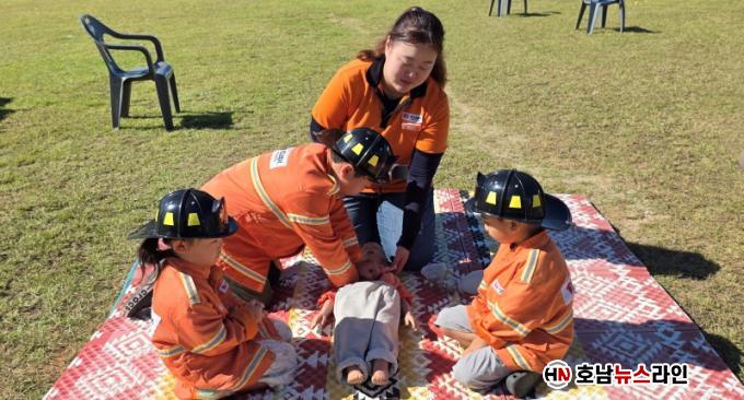 | ¼Ò¹æ°ü Á÷¾÷üÇè¿¡ ³ª¼± ¾ÆÀ̵éÀÌ ¼Ò¹æ°ü º¹ÀåÀ» ÀÔ°í ÀÎ¸í±¸Á¶ Ȱµ¿À» Á÷Á¢ ¹è¿ì°í üÇèÇÏ´Â ¸ð½À.(»çÁøÁ¦°ø-³ªÁÖ½Ã)
