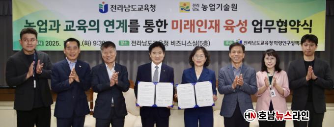 [È£³²´º½º¶óÀÎ = ¼­ÀºÈ« ±âÀÚ] Àü¶ó³²µµ±³À°Ã»(±³À°°¨ ±è´ëÁß)Àº 10¿ù 14ÀÏ Ã»»ç 5Ãþ ºñÁö´Ï½º½Ç¿¡¼­ Àü¶ó³²µµ ³ó¾÷±â¼ú¿ø(¿øÀå ±èÇà¶õ)°ú ¡®³ó¾÷°ú ±³À°ÀÇ ¿¬°è¸¦ ÅëÇÑ ¹Ì·¡ÀÎÀç À°¼º ¾÷¹«Çù¾à¡¯À» ü°áÇß´Ù.