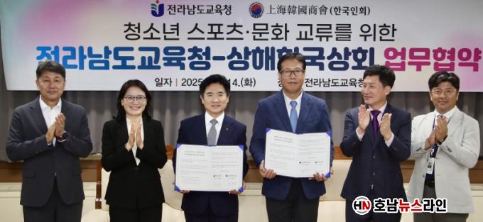 [È£³²´º½º¶óÀÎ = ¼­ÀºÈ« ±âÀÚ] Àü¶ó³²µµ±³À°Ã»(±³À°°¨ ±è´ëÁß)Àº 14ÀÏ »óÇØÇѱ¹»óȸ(ȸÀå ŹÁ¾ÇÑ)¿Í ¡®Ã»¼Ò³â ½ºÆ÷Ã÷¡¤¹®È­ ±³·ù¸¦ À§ÇÑ ¾÷¹«Çù¾à¡¯À» ü°áÇß´Ù.