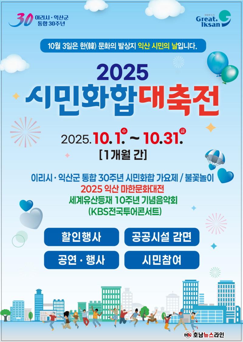 ÀÍ»ê½Ã´Â À̸®½Ã¡¤Àͻ걺 ÅëÇÕ 30ÁÖ³âÀ» ±â³äÇØ 10¿ù ÇÑ ´Þ°£ ½Ã¹ÎµéÀÌ Àϻ󿡼 ¹®È¿Í ¿©°¡¸¦ Áñ±æ ¼ö ÀÖ´Â '½Ã¹ÎÈÇÕ´ëÃàÀü'À» À̾°í ÀÖ´Ù.