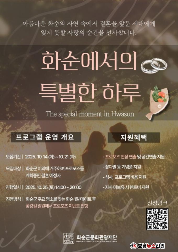 [È£³²´º½º¶óÀÎ = ¼­ÀºÈ« ±âÀÚ] (Àç)È­¼ø±º¹®È­°ü±¤Àç´Ü(ÀÌ»çÀå ±¸º¹±Ô)Àº ¿À´Â 10¿ù 25ÀÏ(Åä) È­¼ø±º ÀÏ´ë¿¡¼­ »ç¶ûÀ» ÁÖÁ¦·Î ÇÑ °¨¼º ÇÁ·Î±×·¥ ¡®È­¼ø¿¡¼­ÀÇ Æ¯º°ÇÑ ÇϷ硯 ÇÁ·Î±×·¥ Âü¿©ÀÚ¸¦ ¸ðÁýÇÑ´Ù°í ¹àÇû´Ù.