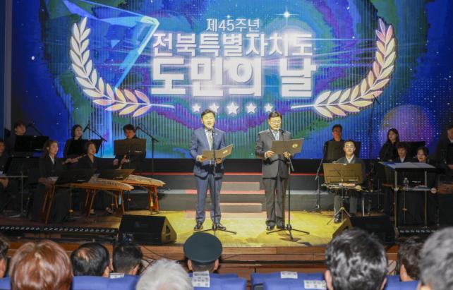[È£³²´º½º¶óÀÎ = ¼ÀºÈ« ±âÀÚ] ÀüºÏƯº°ÀÚÄ¡µµ´Â 10¿ù 20ÀÏ(¿ù), ÀüºÏµµÃ» °ø¿¬Àå¿¡¼ Á¦45ÁÖ³â ÀüºÏƯº°ÀÚÄ¡µµ µµ¹ÎÀÇ ³¯ ±â³äÇà»ç¸¦ ¿¾ú´Ù°í ¹àÇû´Ù. À̹ø Çà»ç¿¡´Â µµ³» ±â°ü¡¤´ÜüÀå, ÃâÇâµµ¹Î, ÀüºÏÀδë»ó ¼ö»óÀÚ µî 900¿© ¸íÀÌ Âü¼®ÇØ ÀüºÏÀÇ »õ·Î¿î 100³â µµ¾àÀ» ÇÔ²² ´ÙÁüÇÏ´Â ¶æ±íÀº ½Ã°£À» °¡Á³´Ù.