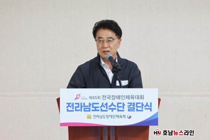 [È£³²´º½º¶óÀÎ = ¼­ÀºÈ« ±âÀÚ] Àü¶ó³²µµÀÇȸ ±èÅÂ±Õ ÀÇÀåÀº 10¿ù 20ÀÏ Àü³²Ã¼À°È¸°ü¿¡¼­ ¿­¸° Á¦45ȸ Àü±¹Àå¾ÖÀÎüÀü Àü³²¼±¼ö´Ü °á´Ü½Ä¿¡ Âü¼®Çß´Ù.