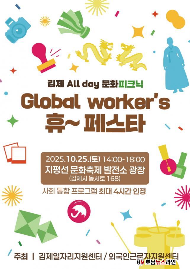 ½Ã´Â ¿À´Â 25ÀÏ ¿ÀÈÄ 2½ÃºÎÅÍ 6½Ã±îÁö ¿äÃ̵¿¿¡ À§Ä¡ÇÑ ÁöÆò¼±¹®ÈÃàÁ¦¹ßÀü¼Ò ±¤Àå(±èÁ¦½Ã µ¿¼·Î 168)¿¡¼ ¿Ü±¹ÀαٷÎÀÚ¿Í ½Ã¹ÎÀÌ ÇÔ²² ¾î¿ï¸®´Â ¹®È±³·ù ÇѸ¶´ç ¡°±èÁ¦ All day ¹®ÈÇÇÅ©´Ð – Global worker¡¯s ÈÞ~Æä½ºÅ¸¡±¸¦ °³ÃÖÇÑ´Ù°í ¹àÇû´Ù.