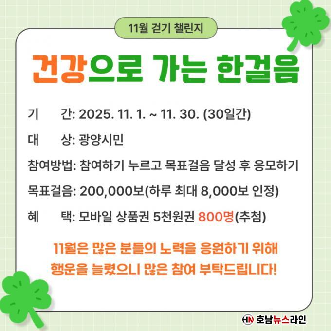 ÇÑÆí, ±¤¾ç½Ã´Â »ýȰ ¼Ó ¿òÁ÷ÀÓÀ» Ȱ¼ºÈÇÏ°í ½Ã¹Î°Ç°ÁõÁøÀ» µµ¸ðÇϱâ À§ÇØ ¸ð¹ÙÀÏ °È±â ¾Û ¿öÅ©¿ÂÀ» Ȱ¿ëÇÑ °È±â 縰Áö¸¦ ¸Å¿ù ¿î¿µÇϰí ÀÖ´Ù. ÇöÀç ±¤¾ç½Ã °ø½Ä Ä¿¹Â´ÏƼ´Â ½Ã¹ÎµéÀÇ Àû±ØÀûÀÎ Âü¿©·Î ´©Àû 9,988¸íÀÌ °¡ÀÔÇÏ´Â µî Ȱ¹ßÇÏ°Ô ¿î¿µµÇ°í ÀÖ´Ù.