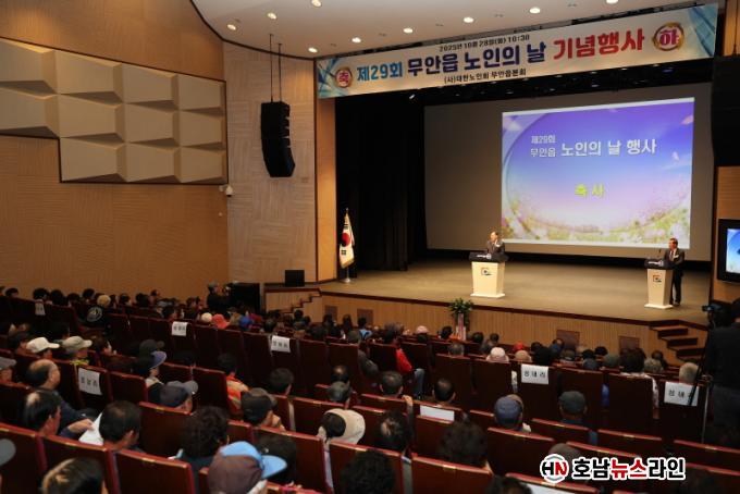 ±è»ê ±º¼ö´Â¡°Á¦29ȸ ¹«¾ÈÀ¾ ³ëÀÎÀÇ ³¯À» Áø½ÉÀ¸·Î ÃàÇϵ帮¸ç, ¿À´ÃÀÇ ¹«¾ÈÀÌ ÀÖ±â±îÁö Çå½Å°ú ³ë·ÂÀ» ¾Æ³¢Áö ¾ÊÀ¸½Å ¾î¸£½Åµé²² ±íÀº Á¸°æ°ú °¨»çµå¸°´Ù¡±¸ç, ¡°¾ÕÀ¸·Îµµ ¾î¸£½ÅµéÀÌ ´õ¿í ÇູÇϰí Ȱ±âÂù ³ëÈĸ¦ º¸³¾ ¼ö ÀÖµµ·Ï ¡®¹«¾ÈÀ» ´õ Å©°Ô, ¾î¸£½ÅµéÀÇ »îÀ» ´õ ³ô°Ô¡¯ ¸¸µé¾î °¡°Ú´Ù¡±°í ¸»Çß´Ù.