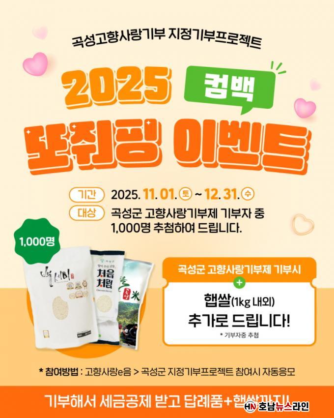 µÎ ´Þ µ¿¾È 10¸¸ ¿ø ÀÌ»ó ±âºÎÀÚ¿¡ ´ëÇØ ¸Å´Þ 500¸íÀ» ¹«ÀÛÀ§ ÃßÃ·ÇØ 1¸¸ ¿ø »ó´çÀÇ Áö¿ª ½ÒÀ» ÁõÁ¤ÇÑ´Ù. Âü¿© ¹æ¹ýÀº °íÇâ»ç¶ûeÀ½ ¶Ç´Â À§±âºê µî ¹Î°£ Ç÷§ÆûÀ» ÅëÇØ °î¼º±º¿¡ ±âºÎÇϸé ÀÚµ¿À¸·Î ÀÀ¸ðµÇ¸ç, ´ç÷ÀÚ´Â °³º° Å뺸µÈ´Ù.
