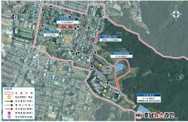 ƯÈ÷, ÀüÁֽô 1´Ü°è »ç¾÷À¸·Î ½Å¼º°ø¿ø ³» ³ìÁö°ø°£ ÁöÇÏ¿¡ ¾à 8200Åæ ±Ô¸ðÀÇ ¿ì¼ö¸¦ ´ã¾ÆµÑ ¼ö ÀÖ´Â Àú·ùÁ¶¸¦ ¼³Ä¡ÇØ µµ½ÉÁö ħ¼ö À§Çè ¿äÀÎÀ» ÇØ¼ÒÇÒ °èȹÀÌ´Ù. ÀÌÈÄ ½Ã´Â ¿À´Â 2027³âºÎÅÍ ½ÃÇàµÇ´Â 2´Ü°è »ç¾÷À» ÅëÇØ ¾à 6960ÅæÀÇ ¿ì¼ö¸¦ ±âÁ¸ ÇмÒÁ¦(¼Ò·ùÁö)¿¡ Ãß°¡ÀûÀ¸·Î ´ã¾ÆµÑ ¼ö ÀÖµµ·Ï ÇмÒÁ¦¸¦ Àú·ùÁö·Î Á¤ºñÇÒ °èȹÀÌ´Ù. ¶Ç, ÇмÒÁ¦ ÁÖº¯¿¡ ¼³Ä¡ÇÏ´Â °ü¸®¿ë µµ·Î´Â ÁֹΠÆíÀÍ Á¦°øÀ» À§ÇØ ÁֹεéÀÌ »êÃ¥·Î·Î ÀÌ¿ëÇÒ ¼ö ÀÖµµ·Ï °èȹÇß´Ù.