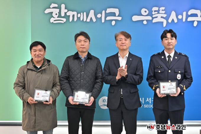 ¼±¸´Â 5ÀÏ ¼±¸Ã»¿¡¼ °í(ͺ) ±è½ÅÀÚ ¾¾ À¯Á·, ÇØ¾ç°æÂû°ü ¹®È£ÁØ ¾¾, ¼Ã¢µ¿ ÀÚ»ý´Üü ¿¬ÇÕȸ ¡®¼Ã¢Çؿ¡¯ÀÌ ÇÔ²²ÇÑ ¡®³ª´®¸®´õ100(Giving Leaders Club)¡¯ °¡ÀÔ½ÄÀ» ¿°í °¨»çÀÇ ¶æÀ» ÀüÇß´Ù.