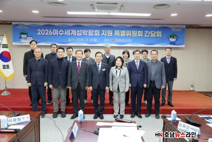 [È£³²´º½º¶óÀÎ = ¼­ÀºÈ« ±âÀÚ] Àü¶ó³²µµÀÇȸ 2026¿©¼ö¼¼°è¼¶¹Ú¶÷ȸ Áö¿ø Ưº°À§¿øÈ¸(À§¿øÀå ¼­´ëÇö)´Â Áö³­ 11¿ù 17ÀÏ µµÀÇȸ ÃÊÀǽǿ¡¼­ °£´ãȸ¸¦ ¿­°í, 300¿© ÀÏÀÌ ³²Àº 2026¿©¼ö¼¼°è¼¶¹Ú¶÷ȸÀÇ ÃßÁø ÇöȲÀ» Á¾ÇÕ Á¡°ËÇß´Ù.