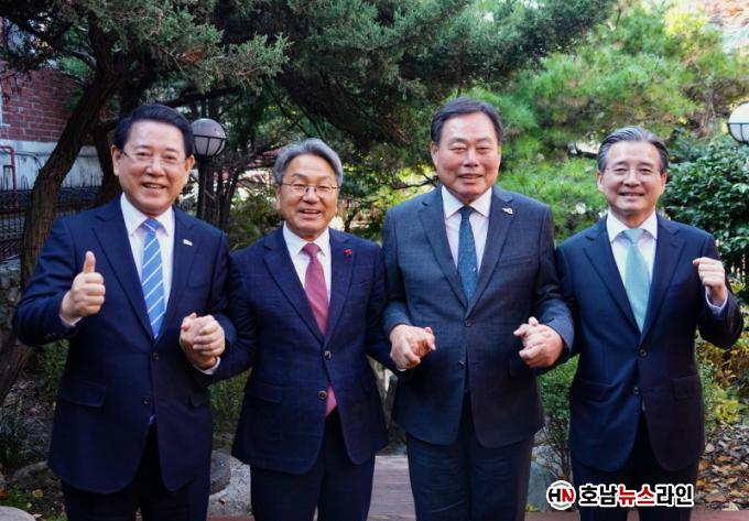 ±è»ê ±º¼ö´Â 19ÀÏ ¼¿ï¿¡¼ ±è¿ë¹ü ´ëÅë·É½Ç Á¤Ã¥½ÇÀåÀÇ ÁÖÀç·Î °±âÁ¤ ±¤ÁÖ½ÃÀå, ±è¿µ·Ï Àü³²Áö»ç°¡ ÷¼®ÇÑ 4ÀÚ »çÀüÇùÀǸ¦ ¸¶Ä£ µÚ À̰°ÀÌ ¹àÇû´Ù.