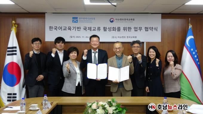 ±¤ÁÖ±¤¿ª½Ã±³À°Ã»Àº 26~27ÀÏ ¿ìÁŰ½ºÅº Ÿ½´ÄËÆ®¿¡¼ Ÿ½´ÄËÆ®Çѱ¹±³À°¿ø, Ÿ½´ÄËÆ®½Ã±³À°Ã» µî 2°³ ±â°ü°ú ¡®±¹Á¦±³À°Çù·Â ¾÷¹«Çù¾à(MOU)¡¯À» ü°áÇß´Ù.