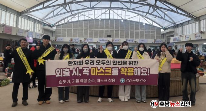 [È£³²´º½º¶óÀÎ = ¼­ÀºÈ« ±âÀÚ] °­Áø±ºÀÌ ÀÎÇ÷翣ÀÚ È®»ê ¹æÁö¸¦ À§ÇØ ¸¶½ºÅ© Âø¿ë°ú ¹é½Å Á¢Á¾À» µ¶·ÁÇÏ´Â °¨¿°º´ ¿¹¹æ Ä·ÆäÀÎÀ» Áö³­ 4ÀÏ °­ÁøÀ¾½ÃÀå ÀÏ´ë¿¡¼­ ½Ç½ÃÇß´Ù.