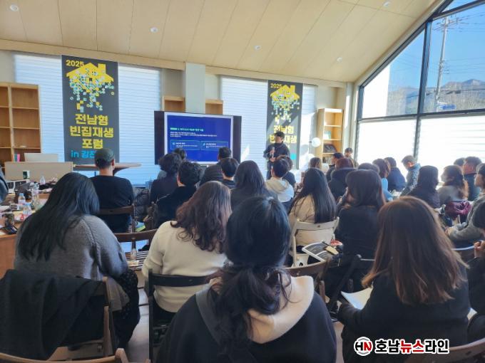 Àü³²µµ¿Í ¸ñÆ÷½Ã, ¼øÃµ½Ã, À强±º, ¿µ¾Ï±º µî µµ³» 9°³ ½Ã¡¤±º¿¡¼­ µµ½ÃÀç»ý»ç¾÷ °ü°èÀÚ, Áß°£Áö¿øÁ¶Á÷, ÁֹξÞÄ¿Á¶Á÷ µî 70¿©¸íÀÌ Âü¼®Çß´Ù. °­Áø±º û³â¸¶À» °øÀ¯ÁÖ°Å Á¶¼º»ç¾÷À¸·Î Á¶¼ºµÈ ¼ºÇϰ´ÀÜ(º´¿µ¸é È«±³·Î 602)¿¡¼­ ÁøÇàµÈ À̹ø Æ÷·³Àº 1ºÎ Àü¹®°¡ °­¿¬°ú »ç·Ê ¹ßÇ¥, 2ºÎ ÇöÀå´ä»ç ¹× ¿öÅ©¼óÀ¸·Î ³ª´² ±¸¼ºµÆ´Ù.