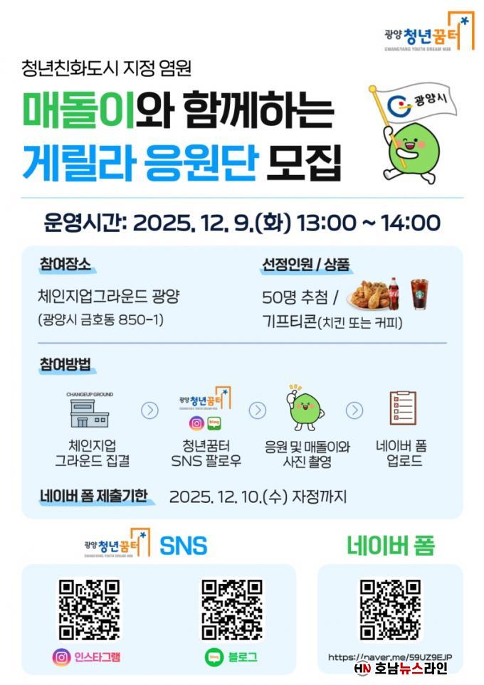 Âü¿©¸¦ Èñ¸ÁÇÏ´Â ½Ã¹ÎÀº Çà»ç ´çÀÏ Ã¼ÀÎÁö¾÷±×¶ó¿îµå ±¤¾ç¿¡¼ °Ô¸±¶ó ÀÀ¿ø¿¡ Âü¿©ÇÑ ÈÄ ¸Åµ¹ÀÌ¿Í ÀÎÁõ»çÁøÀ» ÃÔ¿µÇÏ¸é µÈ´Ù. ÀÌÈÄ Ã»³â²ÞÅÍ °ø½Ä SNS °èÁ¤À» ÆÈ·Î¿ìÇϰí ÀÎÁõ»çÁøÀ» 12¿ù 10ÀϱîÁö ³×À̹ö Æû¿¡ ¾÷·ÎµåÇϸé Âü¿©°¡ ¿Ï·áµÈ´Ù. ¸ðµç ÀýÂ÷¸¦ ¿Ï·áÇÑ Âü¿©ÀÚ Áß ÃÑ 50¸íÀ» ÃßÃ·ÇØ ġŲ ¶Ç´Â Ä¿ÇÇ ±âÇÁƼÄÜÀ» Á¦°øÇÒ ¿¹Á¤ÀÌ´Ù.