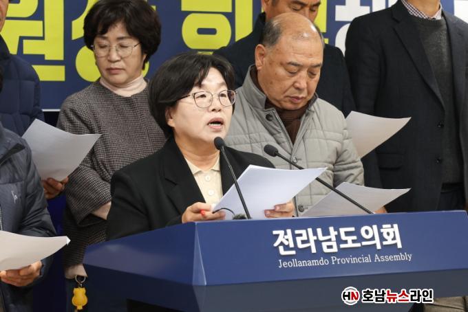 ¿À ÀÇ¿øÀº ¡°Àü³²µµ´Â ³ó¹Îµé°ú ´Ü ÇÑ Â÷·Ê ÇùÀǵµ ¾øÀÌ º °æ¿µ¾ÈÁ¤´ëÃ¥ºñ ¿¹»ê Àý¹ÝÀ» »è°¨ÇÏ°íµµ ¡®Àü±¹ ÃÖ´ë Áö¿ø À¯Áö¡¯¶ó´Â ¿Ö°îµÈ º¸µµÀڷḦ ¹èÆ÷ÇØ °¨¾× Ã¥ÀÓÀ» ȸÇÇÇÏ·Á Çß´Ù¡±¸ç ¡°»ç½Ç»ó ¹ÝÅ丷 ³ ¿¹»êÀ» ÇÕ¸®ÈÇÏ´Â ±Ëº¯¡±À̶ó°í ºñÆÇÇß´Ù.