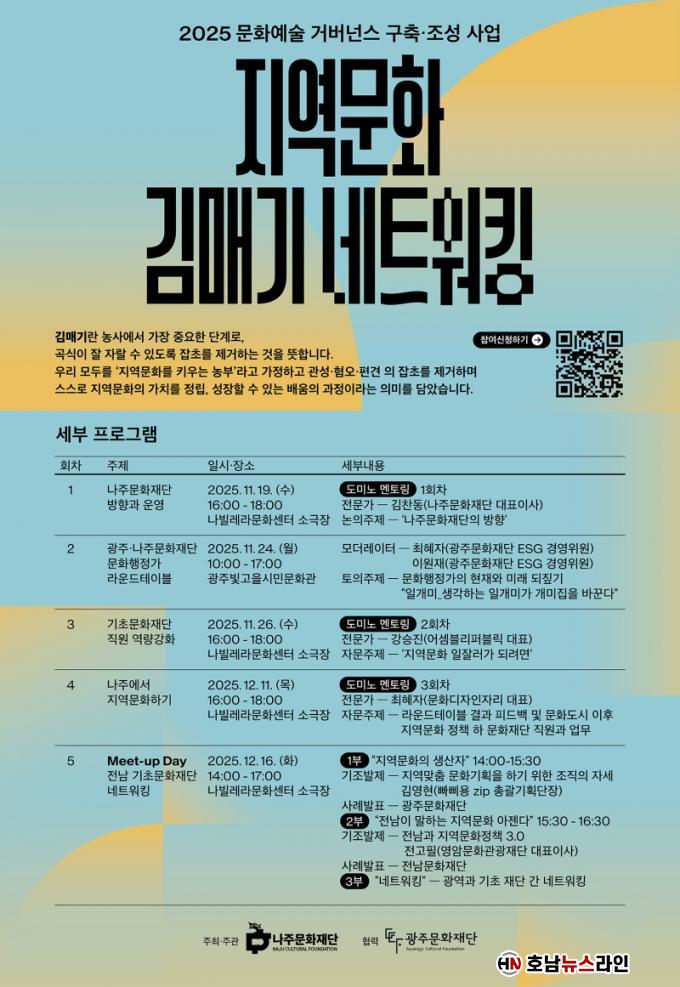 ³ªÁÖ¹®ÈÀç´Ü(ÀÌ»çÀå À±º´ÅÂ)Àº ¿À´Â 12¿ù 16ÀÏ ³ªºô·¹¶ó¹®È¼¾ÅÍ ¼Ò±ØÀå¿¡¼ ¡®Meet-up Day(¹Ô¾÷µ¥ÀÌ)¡¯¸¦ ¿°í Àü³²¡¤±¤ÁÖ±Ç ±¤¿ª¡¤±âÃʹ®ÈÀç´Ü°ú ÇÔ²² Áö¿ª¹®È Çù·Âü°è¸¦ ±¸ÃàÇÑ´Ù°í 11ÀÏ ¹àÇû´Ù.