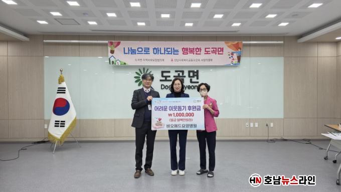 ±è°»ê ºñ¿À¸Þµå¿ä¾çº´¿øÀåÀº ¡°Á÷¿øµé°ú ÁֹεéÀÌ ÇѸ¶À½À¸·Î Âü¿©ÇØ ¸ðÀº ÀÛÀº Á¤¼ºÀÌ ¿ì¸® Áö¿ªÀÇ ¼Ò¿ÜµÈ ÀÌ¿ôµé¿¡°Ô Á¶±ÝÀ̳ª¸¶ º¸ÅÆÀÌ µÇ±â¸¦ ¹Ù¶õ´Ù¡±¶ó¸ç, ¡°¾ÕÀ¸·Îµµ Áö¿ª»çȸÀÇ ÀÏ¿øÀ¸·Î ²ÙÁØÇÑ ³ª´®°ú ºÀ»ç¸¦ ½ÇõÇÏ´Â º´¿øÀÌ µÇ°Ú´Ù¡±¶ó°í ÀüÇß´Ù.