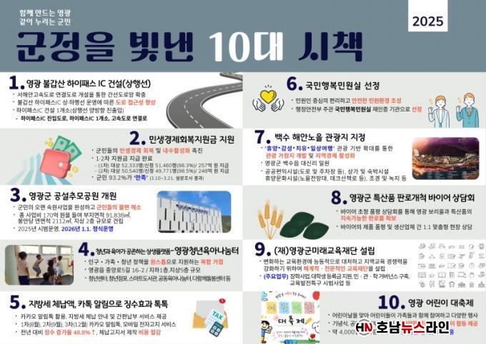 ÀÌ¾î ¿ì¼ö½ÃÃ¥¿¡´Â ¡ã¹Î»ý°æÁ¦È¸º¹Áö¿ø±Ý Áö¿ø ¡ã¿µ±¤±º °ø¼³Ãß¸ð°ø¿ø °³¿øÀÌ Æ÷ÇԵǾúÀ¸¸ç, Àå·Á½ÃÃ¥À¸·Î´Â ¡ãû³â°ú À°¾Æ°¡ °øÁ¸ÇÏ´Â »ó»ý Ç÷§Æû-¿µ±¤Ã»³âÀ°¾Æ³ª´®ÅÍ ¡ãÁö¹æ¼¼ ü³³¾× Ä«Åå ¾Ë¸² ¡¼öÈ¿°ú°¡ À̸§À» ¿Ã·È´Ù. ³ª¸ÓÁö 5°ÇÀº ¡ã±¹¹ÎÇູ¹Î¿ø½Ç ¼±Á¤ ¡ã¹é¼ö ÇØ¾È³ëÀ» °ü±¤Áö ÁöÁ¤ ¡ã¿µ±¤±º Ư»êǰ ÆÇ·Î°³Ã´ ¹ÙÀÌ¾î »ó´ãȸ ¡ã(Àç)¿µ±¤±º¹Ì·¡±³À°Àç´Ü ¼³¸³ ¡ã¿µ±¤ ¾î¸°ÀÌ ´ëÃàÁ¦ÀÌ´Ù.