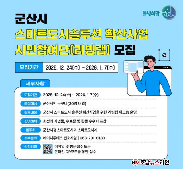 ¸ðÁý ´ë»óÀº ±º»ê½Ã¿¡ °ÅÁÖÇÏ´Â ½Ã¹Î ´©±¸³ª Áö¿ø °¡´ÉÇÏ´Ù. ¼±Á¤µÈ ½Ã¹ÎÂü¿©´ÜÀº ½º¸¶Æ®µµ½Ã ¼Ö·ç¼Ç È®»ê»ç¾÷ °³³ä°ú ¸®ºù·¦ ¿î¿µ¿¡ ´ëÇÑ ±âº»±³À°, ¹®Á¦ Ž»ö¡¤¾ÆÀ̵ð¾î ¹ß±¼ ȸÀÇ, ¼Ö·ç¼Ç Æò°¡ ¹× ÀÇ°ß Á¦½Ã µî ´Ù¾çÇÑ È°µ¿¿¡ Âü¿©ÇÏ°Ô µÈ´Ù.