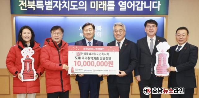 ÀüºÏÀÚÄ¡µµ´Â 24ÀÏ µµÃ» ȸÀǽǿ¡¼ ÀüºÏƯº°ÀÚÄ¡µµ °ÇÃà»çȸ(ȸÀå À̼º¿)°¡ »çȸº¹Áö°øµ¿¸ð±Ýȸ¿¡ ÀÌ¿ô»ç¶û ¼º±Ý 1,000¸¸ ¿øÀ» Àü´ÞÇß´Ù°í ¹àÇû´Ù. À̹ø ¼º±ÝÀº »çȸº¹Áö°øµ¿¸ð±Ýȸ¸¦ ÅëÇØ µµ³» Ãë¾à°èÃþÀÇ °Ü¿ïö ³¹æºñ¿Í »ý°è Áö¿ø, ¸ÂÃãÇü º¹Áö ÇÁ·Î±×·¥ µî¿¡ ¾²ÀÏ ¿¹Á¤ÀÌ´Ù.