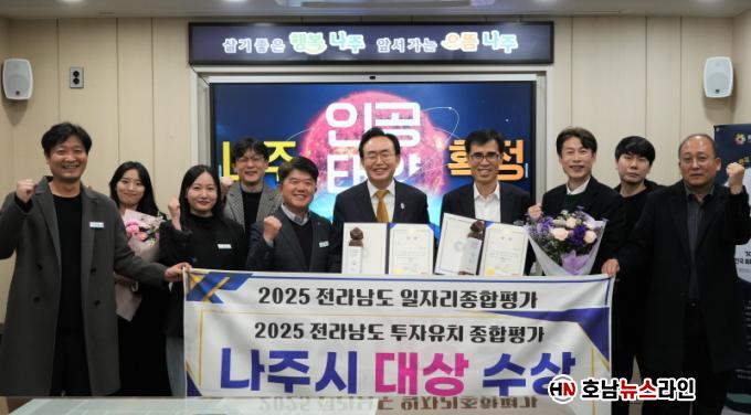 ³ªÁÖ½Ã(½ÃÀå À±º´ÅÂ)´Â Áö³ 24ÀÏ ¿©¼ö¿¢½ºÆ÷ÄÁº¥¼Ç¼¾ÅÍ¿¡¼ ¿¸° ¡®2025³â Àü¶ó³²µµ ÀÏÀÚ¸®¡¤°æÁ¦ ÇѸ¶´ç¡¯ Çà»ç¿¡¼ ÀÏÀÚ¸® âÃâ°ú ÅõÀÚÀ¯Ä¡ 2°³ ºÎ¹®¿¡¼ °¢°¢ ÃÖ°í»óÀÎ ¡®´ë»ó¡¯À» ¼ö»óÇß´Ù°í 26ÀÏ ¹àÇû´Ù.