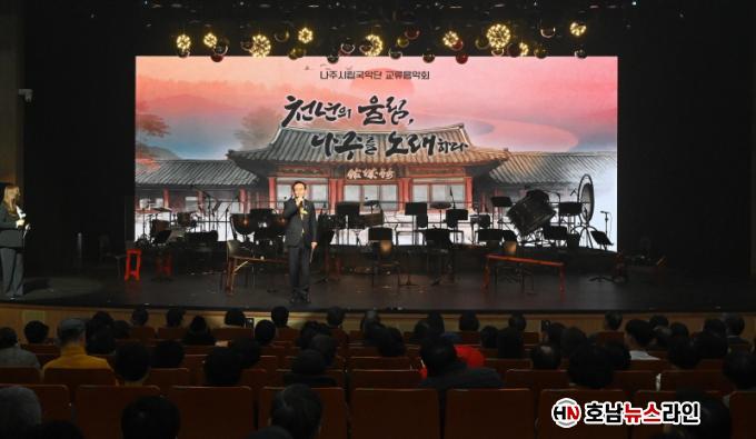 À±º´Å ³ªÁÖ½ÃÀåÀº ¡°À̹ø ±³·ùÀ½¾Çȸ´Â ³ªÁÖÀÇ ÀüÅë ±¹¾ÇÀÌ Áö´Ñ ¿ª»ç¼º°ú ¿¹¼úÀû °¡Ä¡¸¦ ¼öµµ±Ç ½Ã¹Îµé°ú °øÀ¯ÇÏ´Â ¶æ±íÀº ÀÚ¸®¿´´Ù¡±¸ç ¡°¾ÕÀ¸·Îµµ ´Ù¾çÇÑ ±³·ù °ø¿¬À» ÅëÇØ ³ªÁֽø³±¹¾Ç´ÜÀÇ ¿¹¼ú¼º°ú Áö¿ª ¹®ÈÀÇ ¿ì¼ö¼ºÀ» Áö¼ÓÀûÀ¸·Î ¾Ë¸®°Ú´Ù¡±°í ¸»Çß´Ù.