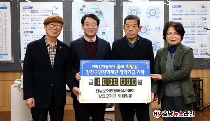 À±ÁØÈ£ Àü³²¹®È°ü±¤Çؼ³»çÇùȸ °Áø±ºÁöȸ ȸÀåÀº 1¹é¸¸ ¿øÀ» ±âŹ ÇßÀ¸¸ç, 2008³âºÎÅÍ ÃÑ 13ȸ, ´©Àû 1õ3¹é¸¸ ¿øÀ» ÀåÇбÝÀ¸·Î Àü´ÞÇØ ¿À¸ç °ÁøÀÇ ¹®È¡¤°ü±¤ ¹ßÀü°ú ÇÔ²² ¹Ì·¡¼¼´ë À°¼º¿¡µµ ÈûÀ» º¸Å°í ÀÖ´Ù. À±ÁØÈ£ ȸÀåÀº ¡°À̹ø ÀåÇбÝÀÌ ¾î·Á¿î ÇлýµéÀÌ Çо÷¿¡ Àü³äÇÒ ¼ö ÀÖ´Â µçµçÇÑ µðµõµ¹ÀÌ µÇ±æ ¹Ù¶õ´Ù¡±°í ÀüÇß´Ù.