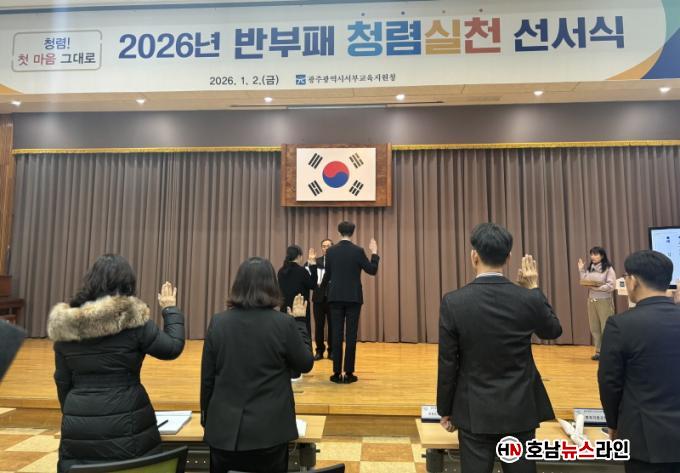 ±¤ÁÖµ¿ºÎ±³À°Áö¿øÃ» À̸í¼÷ ±³À°ÀåÀº ¡°Ã»·ÅÀº ±³À° ÇàÁ¤ÀÇ ½Å·Ú¸¦ ¿Ï¼ºÇÏ´Â °¡Àå °ß°íÇÑ ±â¹ÝÀÌ´Ù¡±¸ç ¡°Åõ¸íÇÑ °øÁ÷ ±â°À» È®¸³ÇØ Çлý°ú Çкθð, ±¤ÁֽùΠ¸ðµÎ°¡ ¸¸Á·ÇÒ ¼ö ÀÖ´Â ±³À° ¼ºñ½º¸¦ Á¦°øÇϰڴ١±°í ¸»Çß´Ù.