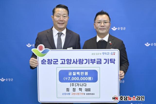 ±¤ÁÖ±¤¿ª½Ã¿¡¼ °èÀ° µµ¼Ò¸Å ¹× Á¦Á¶ Àü¹® ±â¾÷ÀÎ (ÁÖ)°¡³ª´Ù¸¦ ¿î¿µÁßÀÎ ÃÖÁ¤ÇÐ ´ëÇ¥´Â ¼øÃ¢ Ãâ½Å ±â¾÷ÀÎÀ¸·Î¼ °íÇâÀÇ ¹ßÀüÀ» ÀÀ¿øÇϰí Áö¿ª»çȸ¿¡ ³ª´® ¹®È¸¦ È®»ê½Ã۰íÀÚ ±âºÎ±ÝÀ» Àü´ÞÇß´Ù.