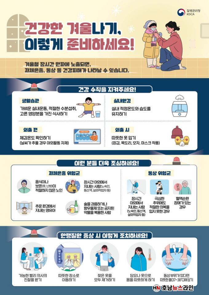 ¿ÜÃ⠽ÿ¡´Â ¿ÊÀ» °ãÃÄ ÀÔ°í Àå°©°ú ¸ñµµ¸®, ¸ðÀÚ µîÀ» Âø¿ëÇØ ü¿ÂÀ» À¯ÁöÇØ¾ß ÇÏ¸ç ½Ç³»¿¡¼´Â ÀûÁ¤½Ç³»¿Âµµ À¯Áö¿Í °¡º¿î ½Ç³»¿îµ¿, ÃæºÐÇÑ ¼öºÐ ¼·Ãë µî ±âº»ÀûÀÎ °Ç°°ü¸®°¡ Áß¿äÇÏ´Ù. ¶ÇÇÑ °Ü¿ïö ºùÆÇ±æ¿¡¼´Â ³«»ó »ç°í À§ÇèÀÌ ³ôÀº ¸¸Å º¸Çà ½Ã °¢º°ÇÑ ÁÖÀǰ¡ ¿ä±¸µÈ´Ù.