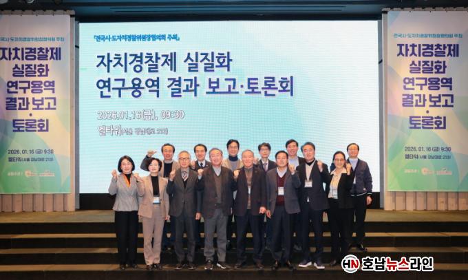 Àü±¹½Ã¡¤µµÀÚÄ¡°æÂûÀ§¿øÀåÇùÀÇȸ´Â À̹ø ¿¬±¸¿ë¿ª °á°ú¸¦ ¹ÙÅÁÀ¸·Î ½Ã¡¤µµ °æÂûûÀ» ±¤¿ªÁö¹æÀÚÄ¡´Üü·Î À̰üÇÏ´Â ¡®¿ÏÀüÇÑ ÀÚÄ¡°æÂûÁ¦¡¯ µµÀÔÀ» À§ÇÑ ´ÜÀÏ °ÇÀǾÈÀ» äÅÃÇϰí, ¹üÁ¤ºÎ ÇùÀÇü ³íÀÇ °úÁ¤¿¡¼ ÇöÀå Áß½ÉÀÇ Á¦µµ ¼³°è°¡ ¹Ý¿µµÇµµ·Ï Àû±Ø ´ëÀÀÇÒ ¹æÄ§ÀÌ´Ù.