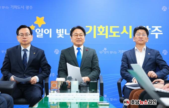 ° ½ÃÀåÀº 3Â÷ °£´ãȸ ÀÌÈÄ ¡®¸íĪÀº ±¤ÁÖÀü³²Æ¯º°½Ã·Î, û»ç´Â ±¤ÁÖ¡¤¹«¾È¡¤µ¿ºÎ, 3°³ û»ç¸¦ ±ÕÇüÀÖ°Ô ¿î¿µÇ쵂 ÁÖ¼ÒÀçÁö¸¦ Àü³²À¸·Î ÇÑ´Ù¡¯´Â °¡¾ÈÀÌ ¾Ë·ÁÁö¸é¼ ½Ã¹ÎµéÀÇ ¿ì·Á¿Í °ÆÁ¤¿¡ ´ëÇÑ ÀÔÀåÀ» ¹àÈù °ÍÀÌ´Ù.
