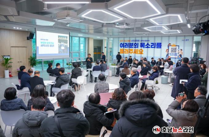 ±¤ÁÖ±¤¿ª½Ã(½ÃÀå °±âÁ¤)´Â 26ÀÏ ±¤ÁÖâ¾÷°ÅÁ¡ÀÎ ºÏ±¸ ½ºÅ×ÀÌÁö(ºû°íÀ»Ã¢¾÷½ºÅ×À̼Ç)¿¡¼ ¡®±¤ÁÖÀü³² ÇàÁ¤ÅëÇÕ °æÁ¦¡¤»ê¾÷ ºÐ¾ß Á÷´Éº° ½Ã¹Î°øÃ»È¸¡¯¸¦ ¿°í °æÁ¦´Üü, »ê¾÷°è, ³ó¾÷ÀÎ µî °¢°è ÀǰßÀ» Æø³Ð°Ô ûÃëÇß´Ù.