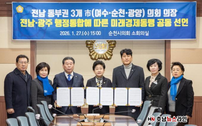 3°³ ½ÃÀÇȸ ÀÇÀåÀº ¡°¿©¼ö¡¤¼øÃµ¡¤±¤¾çÀº ÀÌÁ¦ °æÀïÀÌ ¾Æ´Ñ ¿¬´ë¸¦ ÅëÇØ Àü³²µ¿ºÎ±Ç °øµ¿ ¹ø¿µÀÇ ±æÀ» ¿¾î°¥ °Í¡±À̶ó¸ç, ¡°ÇàÁ¤ÅëÇÕÀÌ ¾î´À ÇÑ Áö¿ª¸¸ÀÌ ¾Æ´Ñ Àü³² Àü¿ª°ú ±¤ÁÖ°¡ ÇÔ²² ¼ºÀåÇÏ´Â ÁøÁ¤ÇÑ ±ÕÇü¹ßÀü ¸ðµ¨ÀÌ µÉ ¼ö ÀÖµµ·Ï °øµ¿ÀÇ ¸ñ¼Ò¸®·Î Çù·ÂÇØ °¥ °Í¡±À̶ó°í ¹àÇû´Ù.