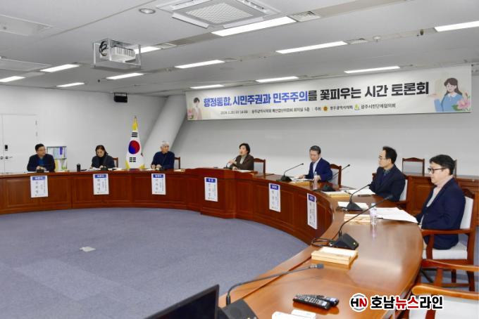 ƯÈ÷, ÀÇȸ ±â´ÉÀ» °ÈÇÏ°í ±³À°ÀÚÄ¡¸¦ ±¸ÇöÇÏ´Â µî µÎ ÇàÁ¤ÅëÇÕÀÌ ÇÕ¸ñÀû¼ºÀ» °®±â À§Çؼ´Â ½ÇÁúÀûÀÎ Á¦µµ¸¦ ¼³°èÇØ¾ß ÇÑ´Ù´Â ÀǰßÀÌ´Ù. 28ÀÏ ±¤ÁÖ±¤¿ª½ÃÀÇȸ´Â ±¤ÁֽùδÜüÇùÀÇȸ¿Í °øµ¿À¸·Î ½ÃÀÇȸ 5Ãþ ¿¹»ê°á»êƯº°À§¿øÈ¸ ȸÀǽǿ¡¼ ¡®ÇàÁ¤ÅëÇÕ, ½Ã¹ÎÁֱǰú ¹ÎÁÖÁÖÀǸ¦ ²ÉÇÇ¿ì´Â ½Ã°£ Åä·Ðȸ¡¯¸¦ °³ÃÖÇß´Ù.