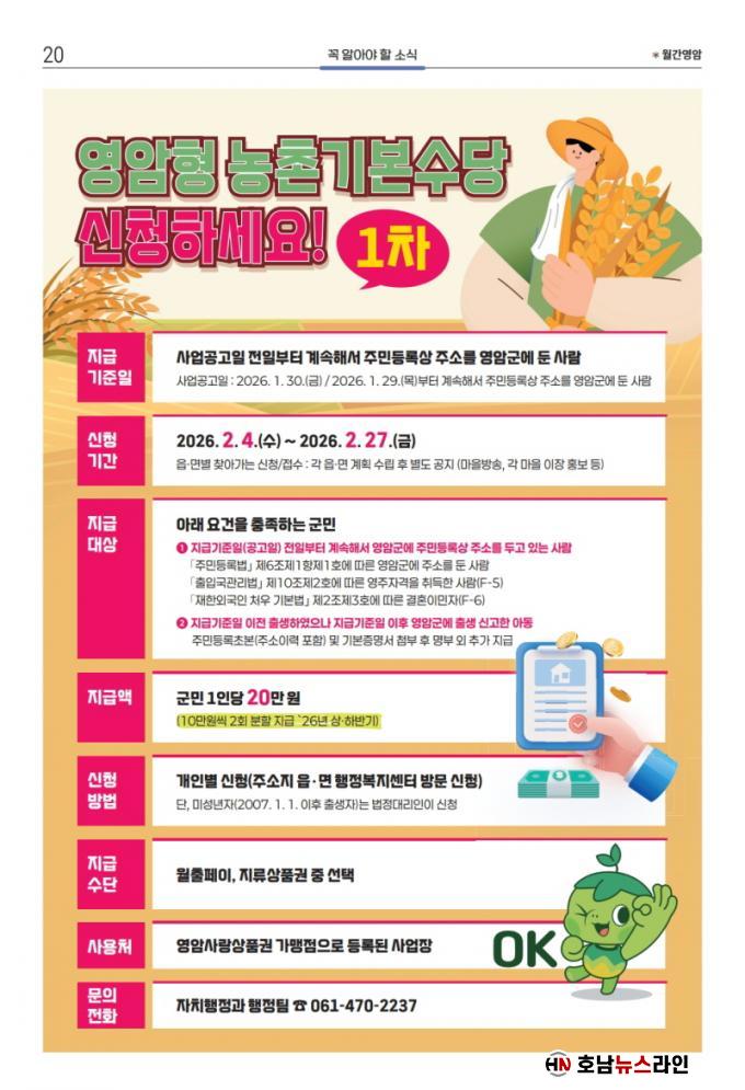 À̹ø 1Â÷ ³óÃ̱⺻¼ö´çÀº Áֹεî·Ï»ó ¿ÃÇØ 1/29ÀϺÎÅÍ ¿µ¾Ï±º¹ÎÀÎ »ç¶÷¿¡°Ô 1Àδç 10¸¸¿øÀ» Áö±ÞÇϰí, °áÈ¥À̹ÎÀÚ(F-6), ¿µÁÖÀÚ°Ý ÃëµæÀÚ(F-5)µµ Æ÷ÇԵȴÙ. ¼ö´ç ½ÅûÀº 4ÀϺÎÅÍ ÁÖ¼ÒÁö À¾¡¤¸éÇàÁ¤º¹Áö¼¾Å͸¦ ¹æ¹®ÇØ ÇÒ ¼ö ÀÖ°í, °í·ÉÀÚ¡¤°Åµ¿ºÒÆíÀÚ µîÀº ¸¶À» ´ã´çÀÚ°¡ ã¾Æ°¡ Áö±ÞÇÏ´Â ¹æ½Äµµ º´ÇàµÈ´Ù.