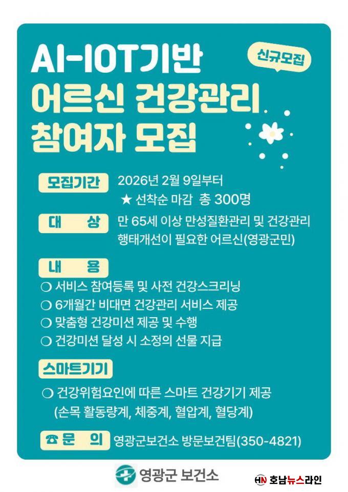 ¸ðÁý ´ë»óÀº µ¶°Å¾î¸£½Å, °Ç°À§Çè¿äÀÎ(Ç÷¾Ð, Ç÷´ç, BMI) ÆÇÁ¤¼öÄ¡ Áß 1°³ ÀÌ»ó ÇØ´çÇÏ´Â ¾î¸£½Å µîÀ¸·Î ¿ì¼±¼øÀ§¿¡ µû¶ó ¸ðÁýÇϰí, ¼±Á¤µÈ ´ë»óÀÚ¿¡°Ô »çÀü °Ç°ÃøÁ¤°á°ú¸¦ ¹ÙÅÁÀ¸·Î ½º¸¶Æ® ±â±â¸¦ ¹èºÎÇÑ´Ù. ÀÚ¼¼ÇÑ »çÇ×Àº ¿µ±¤±ºº¸°Ç¼Ò °Ç°ÁõÁø°ú(350-4821)·Î ¹®ÀÇÇϸé Ä£ÀýÇÏ°Ô ¾È³»¹ÞÀ» ¼ö ÀÖ´Ù.